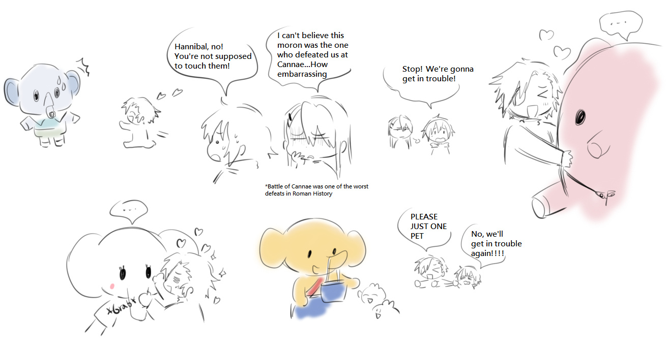 My comic is meant to be a gag comic. The overall format was inspired by Azumanga Daioh! So each "page" is really different from the last in regards to the plot line. But sometimes the pages will be in parts if the punchline(?) takes longer to deliver or if there's actually a plot that's going on. Also that's why there's titles. I debated if I wanted to include titles and in the end I went for it. I won't lie, I sometimes don't know what to name them so sometimes they'll be really random but related to whatever's going on.-Caesar is very frustrating. Why does he act like that?