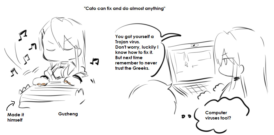 I've been drawing historical & mythological figures as girls for a long time now. I think it's fun because I love designing characters a lot and I love girls.-How do you usually make pages?